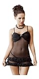 Beautiful black sheer chemise with ruffles to the bust and hem. Also featuring a dazzling diamante detail to the bust. Cross over lace up back and matching thong is included. Comes packaged in its own pretty branded gift box, All European made. Sizes: Small (US6-8), Medium (US8-10), Large (US10-12), XLarge(14-16), XXL (US14-16). Material 97% Polyester, 2% Polyamid, 1%Elastan. Perfect item for a Gift. (As on 01 Jan, 2014) |