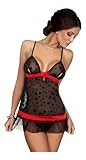 | Beautiful peep hole chemise in sheer black lace with red hemming detail, bows and adjustable straps. Matching string is included. Comes packaged in its own pretty branded gift box, All European made. Sizes: Small /Medium (US6-8), Large/XLarge (US10-12). Material 88% polyester, 12% elastane. Perfect item for a Gift. (As on 01 Jan, 2014) | Choose From Small (6-8), Medium(10-12) or Large (14-16). Short Backless Babydoll. Underwire padded bra, adjustable straps, bow detail and organza ruffle trim. Includes Gstring. Women's Sizing. (As on 01 Jan, 2014) | Packed with gift bag,the item name will write"Gifts" no one know what is in. Special and sexy lingerie for ladies is very attractive and hot for drawing attention from your lover. Buyer satisfy first, if not satisfied, please contact us for a solution. One size fits XS-M, Color: as picture. With the Lingerie,it is sexy and fun,enjoy the night. (As on 01 Jan, 2014) |