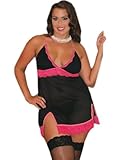 Queen Size (16-20). Plus Size Mesh Chemise. Black Dotted Mesh With Hot Pink Lace Edge. Matching Thong Included. Womens Sizing. (As on 01 Jan, 2014) |